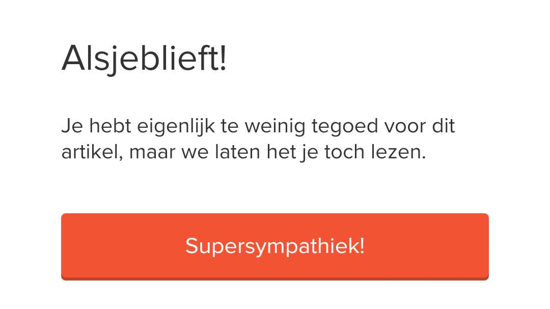 Besides, I love the user experience*. In fact, this newspaper platform saves me time and money. Specifically, it aggregates articles customized to my interests in a daily email by letting experts seek out the best content for me, and I pay per article rather than per 6 month subscription. And it gets better: if I don’t like an article for whatever reason, I can immediately get my money back. Blendle even goes the extra mile, by allowing me to continue reading articles after I’ve run out of credit, sparing me the hassle of buying credit in between reading articles. In addition, its newsletter headlines are so compelling, it really makes me want to click. Even more so, I’m often in debate with myself as to which article will be more interesting to read when time is restricted. Also, as soon as I’ve opened an article, I see the average reading time, which allows me to determine whether I actually have time to read it in the first place. If I’ve been too busy to read anything at all, its weekly newsletter will summarize the week’s most popular articles. In addition, my user account provides an overview of the articles I’ve read and the cost per article, which is a nice summary of my reading history. Moreover, I love its tone of voice. Specifically, I really get the feeling it thinks along with the customer.