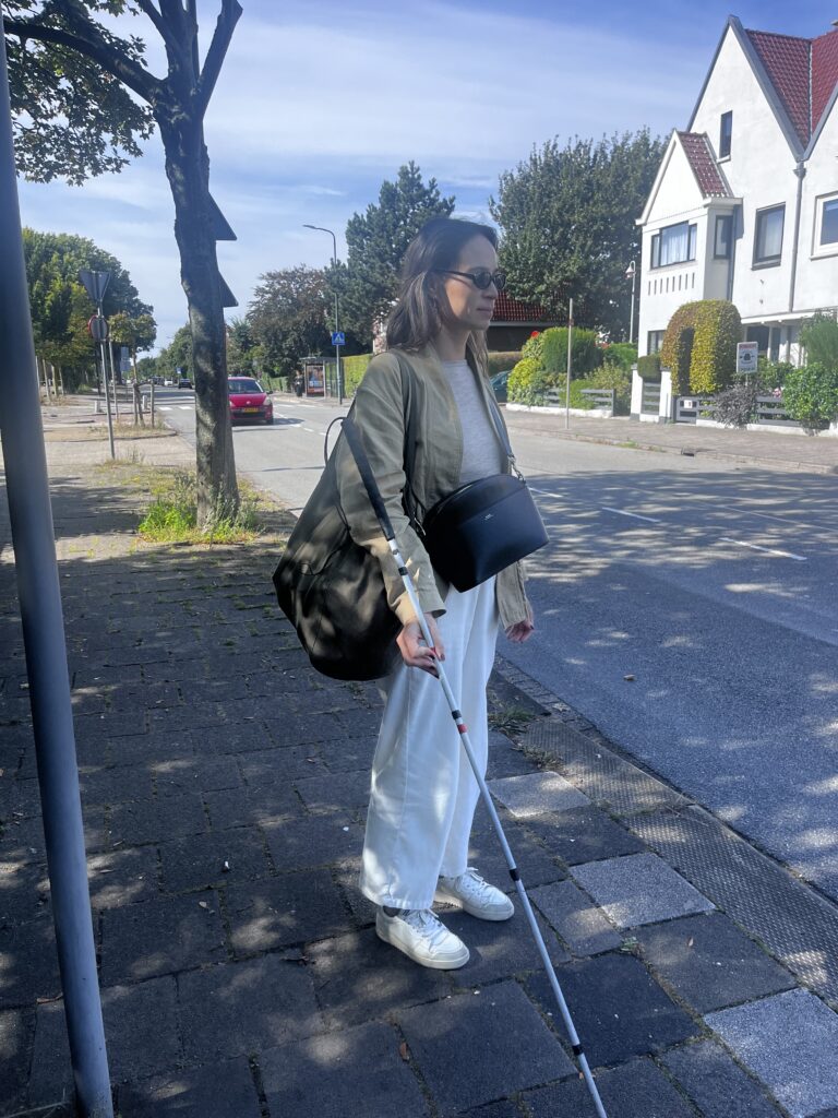 “One of the downsides of having a guiding dog is to walk into a cafe and draw even more attention. At least I can fold a guiding stick” – Anneke